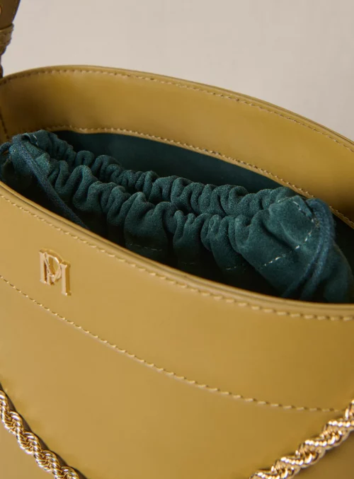 El bolso ADAM combina elegancia y funcionalidad. Su forma de cubo renovada, su cadena con pedrería y su color brillante lo convierten en una pieza destacada, perfecta para realzar tus looks de día y de noche. Nos encanta su interior en contraste que le da un toque inesperado.