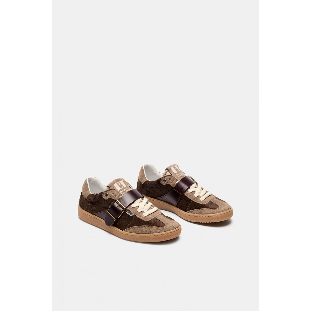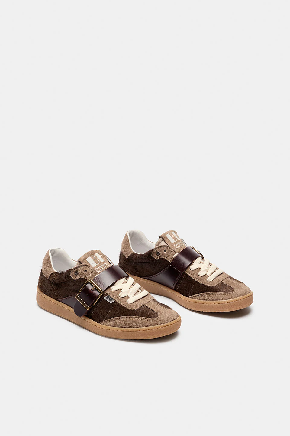 Zapatilla tipo tenis que combina piel de serraje vacuno y pelo de potro