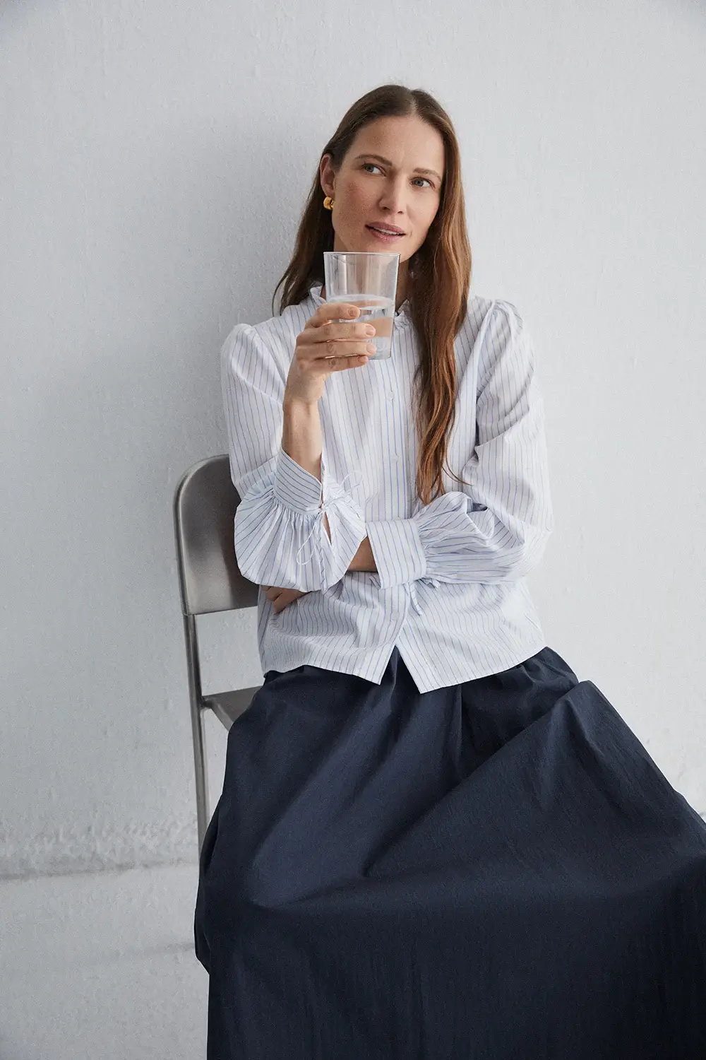 La falda Creta está confeccionada en 100% ramio, en color verde, con un tejido natural que aporta frescura y ligereza. De largo midi y diseñada con cintura elástica, forro interior de algodón y bolsillos laterales en diagonal, ofrece comodidad y funcionalidad sin renunciar a una silueta femenina y elegante. La falda Creta se puede llevar con su top a conjunto en blanco o verde, o combinar con camisetas y blusas ligeras para crear looks frescos y sofisticados..