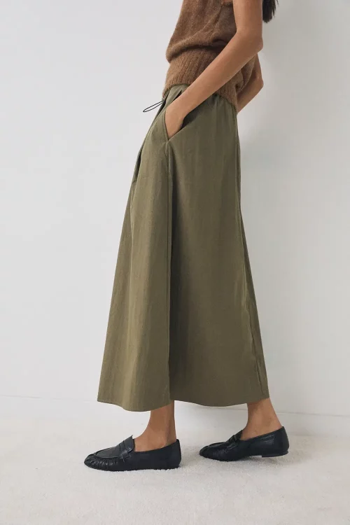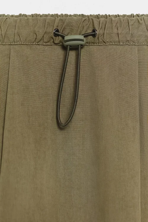Falda con bolsillos verde. Goma en la cintura trasera. Ajustador en la cinturilla delantera