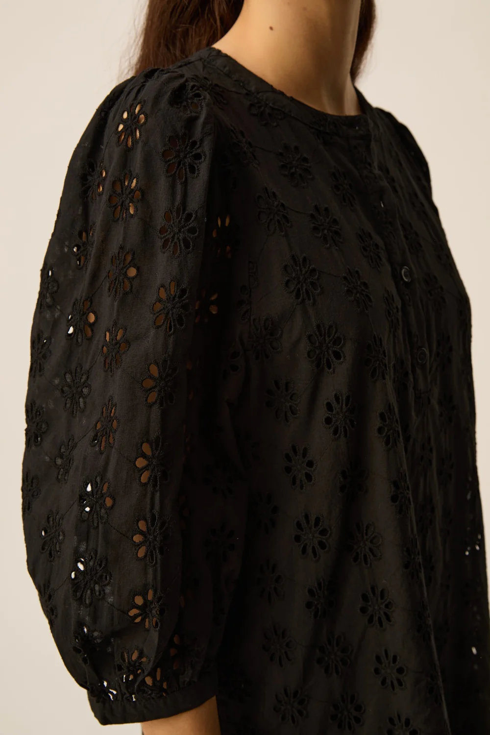 • Confeccionado en algodón delicadamente calado, adornado con bordado inglés floral que le aporta textura y refinamiento